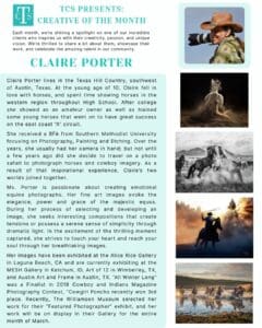 TCS PRESENTS CLAIRE PORTER AS OUR CREATIVE OF THE MONTH